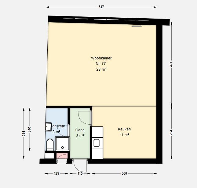 De studio wordt volledig gestoffeerd opgeleverd en de keuken beschikt over een kookplaat, afzuigkap en koelkast.
