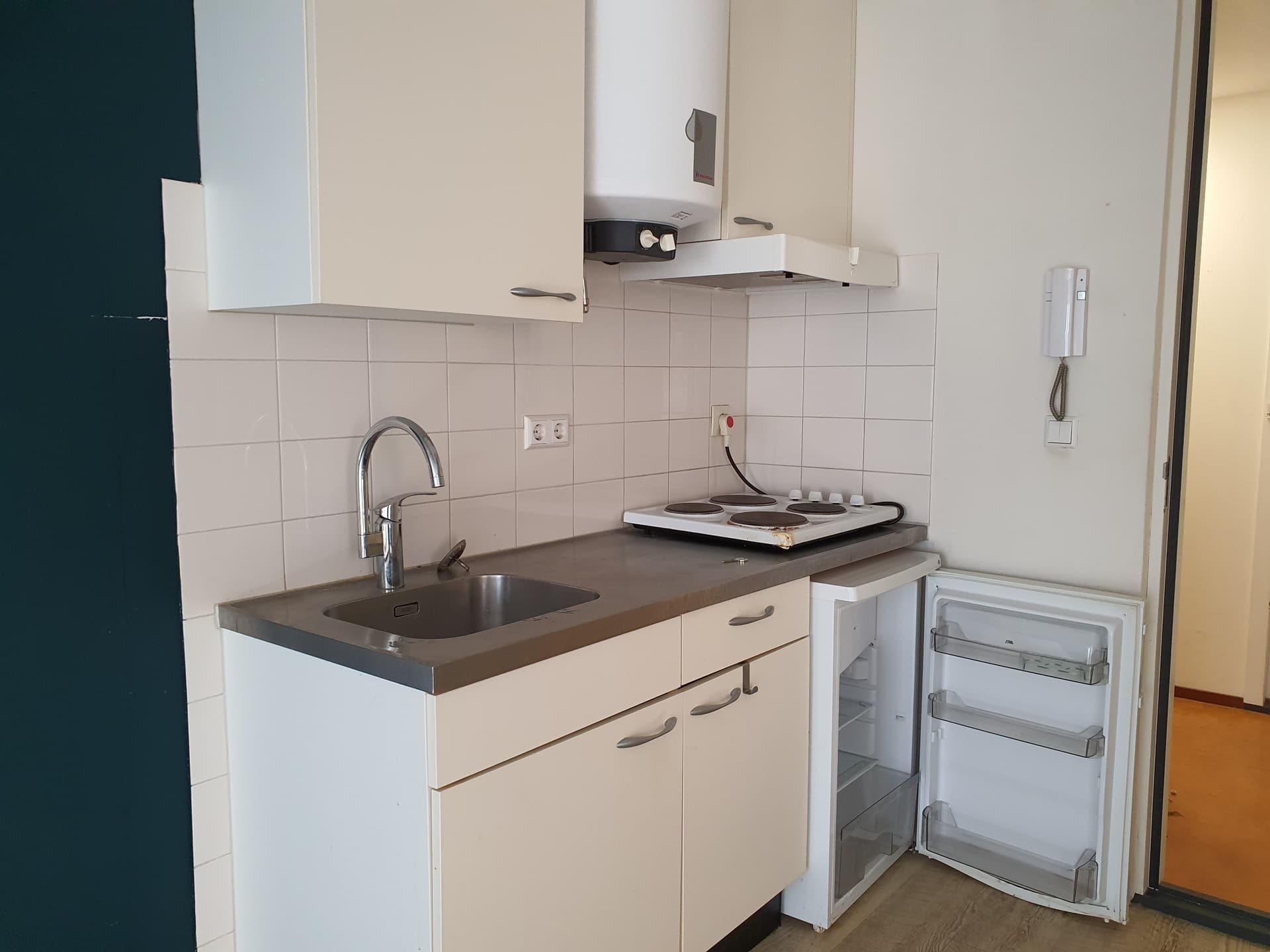 Het betreft een studio van zo’n 28 m2. Je hebt de keuken, badkamer en toilet dus voor jezelf! De studio wordt gestoffeerd opgeleverd, voorzien van een PVC vloer, gordijnen, kookplaat, afzuigkap en koelkast.