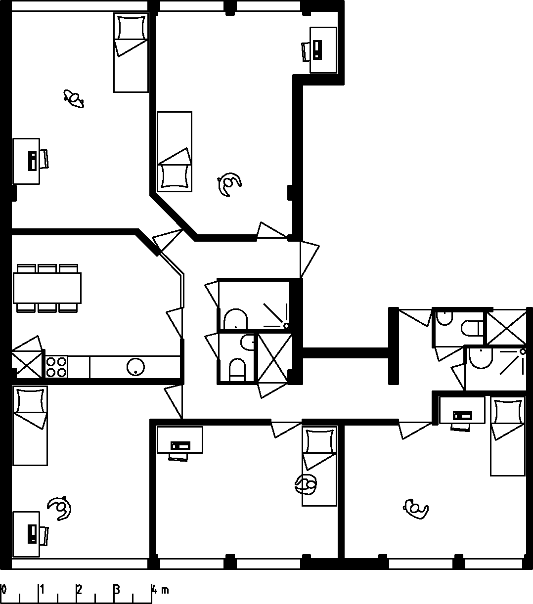 De kamers in woongebouw Scheepmakershaven zijn gemiddeld 21 m2. Je deelt de keuken, badkamer en het toilet met een of meerdere huisgenoten. De studio’s hebben een gemiddelde oppervlakte van 42 m2; hierin heb je de keuken, badkamer en het toilet voor jezelf. Sommige studio’s hebben een entresol: een tussenverdieping waardoor je extra ruimte hebt. De Scheepmakershaven heeft 78 kamers en 8 studio’s. Er is een wooncommissie actief.